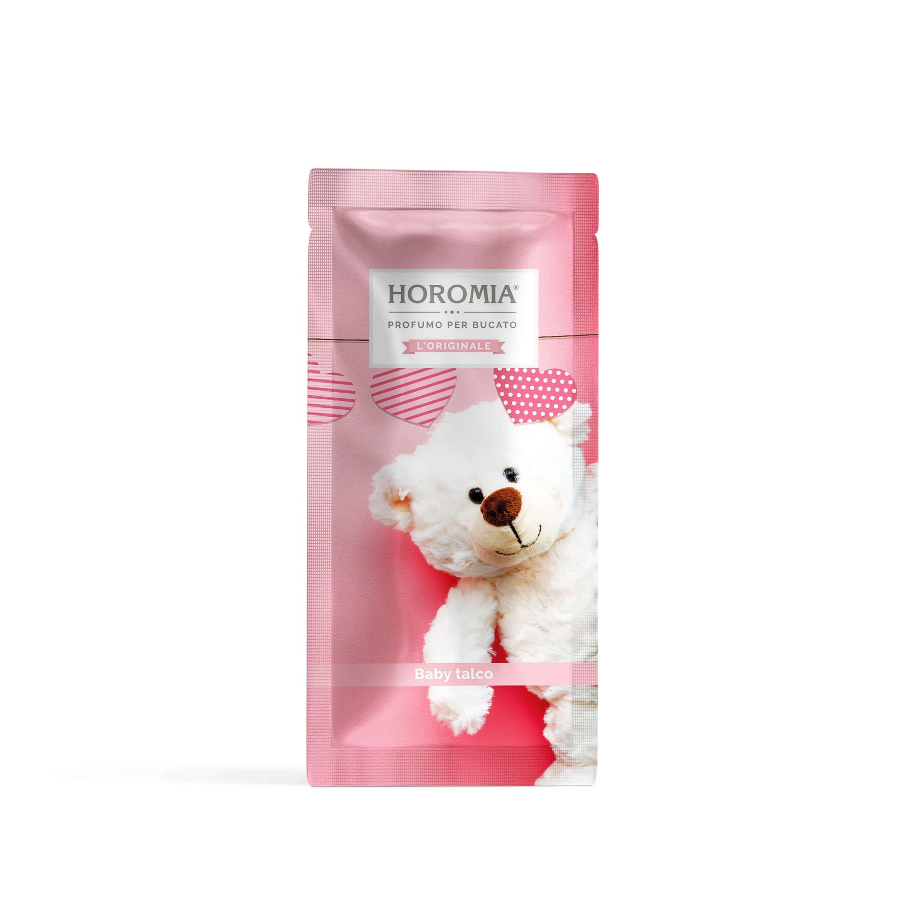 Horomia Baby Talco je nežen, svež, nevtralen vonj. Primeren za vse, ki želijo, da vas čez dan obdaja nežen, prijeten, mehek občutek.