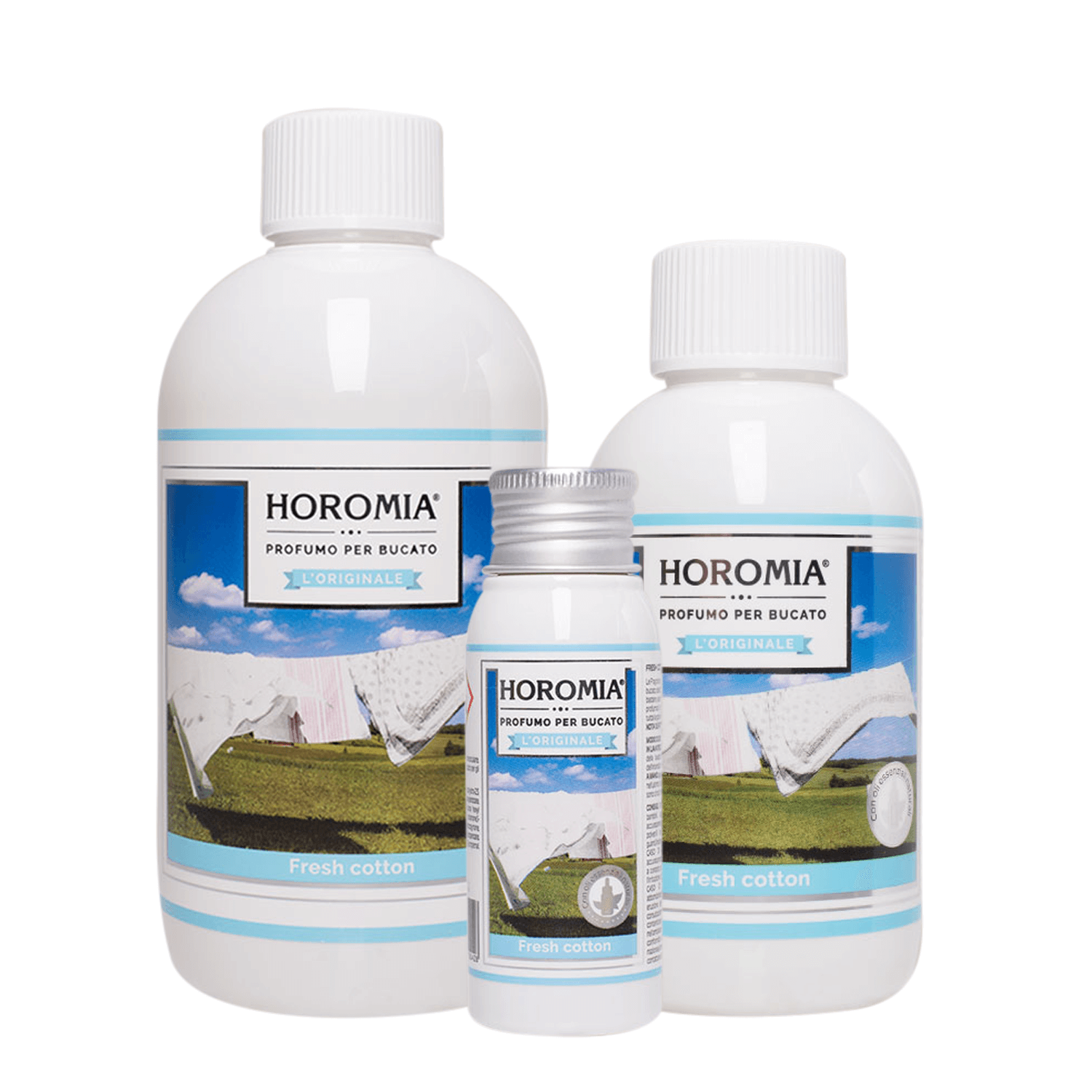 Novo na trgu! Ste že slišali za parfum, ki se uporablja za pranje perila? Sedaj je na voljo tudi pri nas. V ponudbi imamo 16 različnih vrst parfumov za pranje perila. Na voljo so v štirih različnih velikostih; 20, 50, 250 in 500 ml. Izdelki so narejeni v Italiji v podjetju Horomia, ki ima dolgoletno tradicijo za tovrstne izdelke